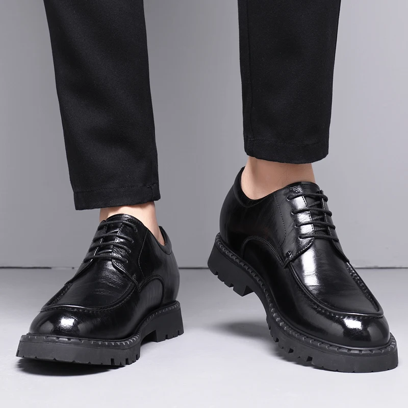 Men’s Dress Shoes Elevator Shoes Platform Breathable Casual Business Luxury Genuine Leather Heightening Shoes 8 6CM Taller Male